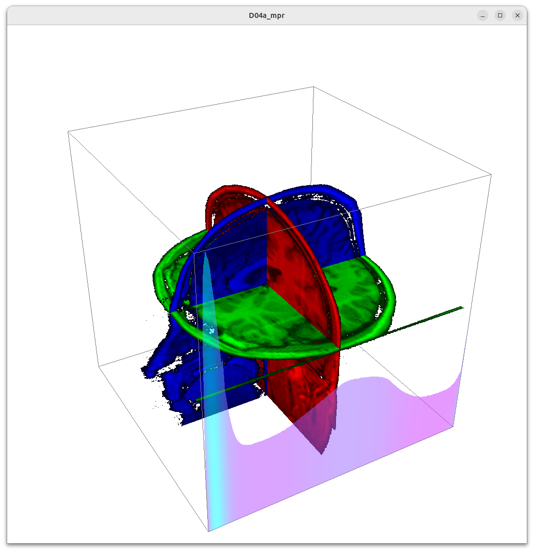 Realisieren Sie eine einfache MPR Darstellung mit GL (bzw. mit LGL) mit drei achsenparallelen Schichten.
