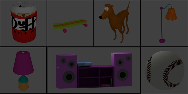 (von oben links) Duffdose, Skateboard, Knecht Ruprecht, Stehlampe, Tischlampe, Bücher, Regal, Sofa, Fernseher, Bilder