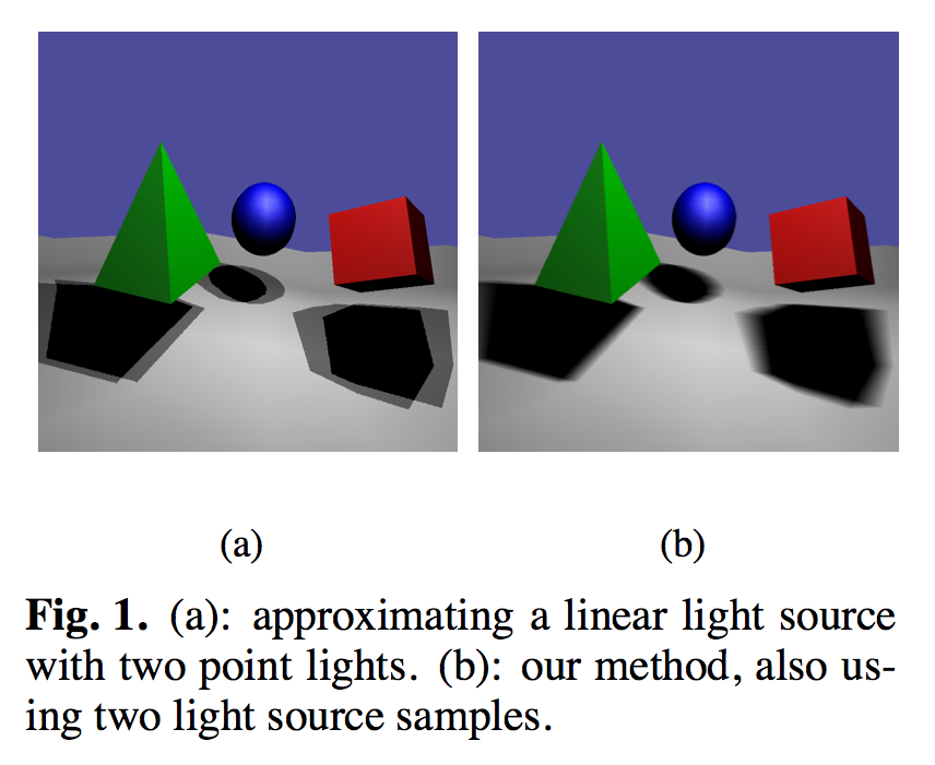 The “Soft Shadows” graphics algorithm by Wolfgang Heidrich et. al. compared with the standard approach of Shadow Maps:
