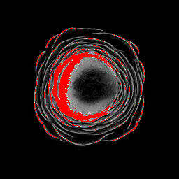 Replacing high intensity values of a Dicom cross section of an Artichoke with red colors: